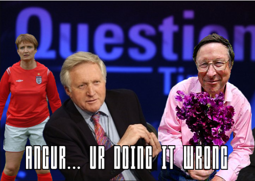 So we’re in Glasgow tonight and that means that we’re going to see the SNP which in turn means that it’s either going to be Salmond or Sturgeon. Now, I must confess that I don’t really keep abreast of Scottish politics, mainly because it has absolutely no bearing on my day-to-day life in any way, shape or form, but c’mon! There’s got to more than two people in the whole bloody party! Anyhoo, minor chunter aside, it was Sturgeon’s turn tonight and I must say she did better than last time when she ended up embroiled in all sorts of Megrahi related bother. I’m not going to get to carried away in writing this up as it was a pretty much textbook regional party play: Have a go at whoever’s in power, stay well to the left of the mainstream and make damn sure you get some nationalist call-to-arms type stuff in the (something that she got told off by Dimber’s for in Q4 but went ahead with anyway). However, she did play these tactics quite well and she came close to knocking Davey right off-balance with a pretty well-reasoned argument about the Housing Benefit reforms in Q1. So yes, pretty solid Nicola. However, you do still look like a tomboy and I have a nasty feeling that you may be the person who keeps buying Sharleen Spiteri Albums. Please stop with that. It only encourages her.