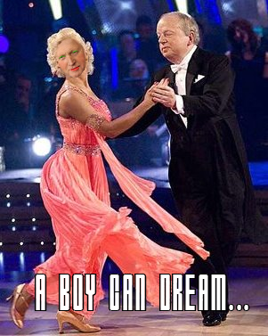 I hate Strictly. I hate Strictly because it’s about dancing and I hate dancing with a passion as it serves no purpose other than to make me feel intensely embarrassed if I ever find myself in a situation that might require me to engage in the act of dancing. Ever wondered why guitar based genres of rock are so popular with white males who have little coordination? Well, here’s your answer: It’s because dancing is bollocks. That should naturally lead me to have an instant disdain for John Sergeant but it doesn’t because a) I have fond memories of growing up and marvelling at how a man with a face like his could ever a appear on TV, b) I hear he upset a lot of people on Strictly by dint of being a crap dancer and c) I like to think that him and Dimbers may one day share a tender waltz together (see Fig. 2).