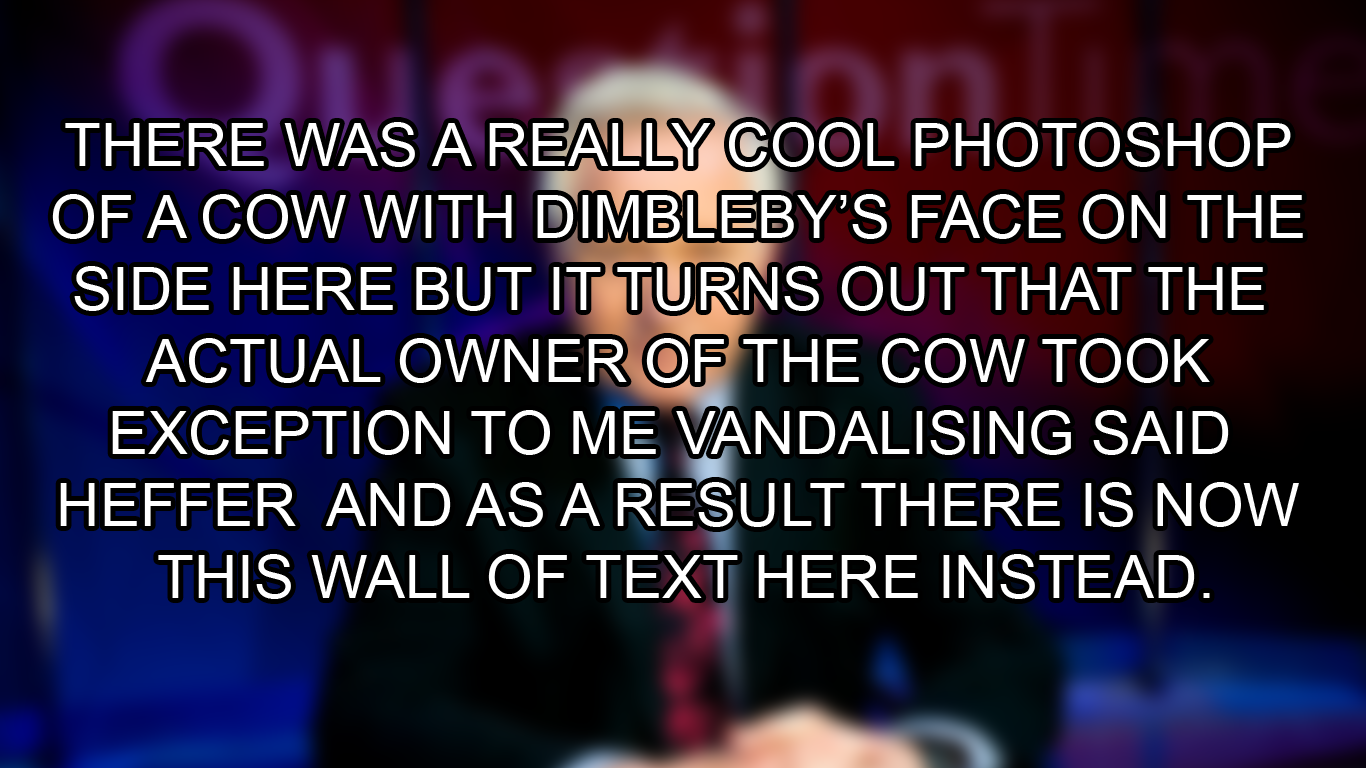 Good morrow lemmings and welcome to a very deep-fried edition of Questionable Time! Now I don’t know much about Scottish politics, aside from the fact that everybody currently seems terminally pissed off at the Labour Party, like a cat that’s thrown up on the rug. With this flawless understanding of the political climate in hand, let’s dive straight in. What could possibly go wrong?