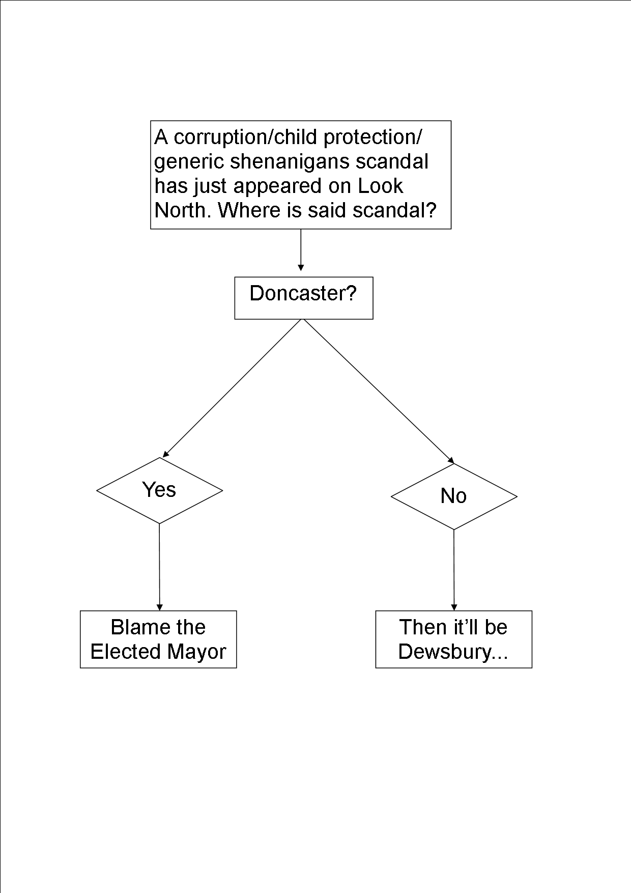 Ok, I have to admit that I was expecting a different kettle of fish tonight, mainly out of some rather unfair prejudices I harbour about Dewsbury. I live in Leeds and (as the handy diagram below shows) if there’s something tabloidy and nefarious going on in West Yorkshire, it’s quite often in Dewsbury.