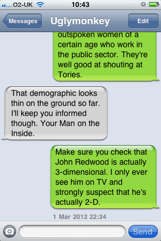 I had absolutely no idea who Justine Greening was before tonight and feared we’d be presented with another of this weird, faceless breed of Tory young pups who have so far failed to make an impression on me. However, I have to say that she did pretty well, getting a lot of love from the audience and coming across as the most confident of the three party panellists. I think that this is partly a consequence of her pulling off being Northern far better than most Tories do. If you think about it, the Conservatives only really have three Northern faces that get any attention these days: William Hague, Ed Pickles and Baroness Warsi. Hague has never looked too comfortable in his Northern skin as it made him look like a bit of an oddity amongst his peers. I suspect that he probably received quite a bit of ribbing from The Old Boys for his Rotherham roots and as a result, he always seemed very conscious of it and perhaps a little ashamed. Pickles looks far more at ease with his heritage, but his problem is that while he tries to play the Salt Of The Earth Northerner card, it doesn’t quite work. Instead, he comes across as a provincial shopkeeper who resents selling stuff to the tourists who keep his business afloat and to anyone who isn’t ‘his kind of person’. It’s all a little bit self important and twatty. The final contender, Baroness Warsi, simply doesn’t register on the scale because her Northern-ness is completely eclipsed by her Asian-Toriness, something which is so novel that it completely overpowers the fact that she’s from West Yorkshire (and her Pulled Up By The Bootstraps schtick does grate a little). Justine Greening, by contrast, has managed to hit the nail on the head by coming across as slightly novel (for a Tory), yet unpretentious and down to earth. On the show she did pretty well considering Dewsbury isn’t natural Tory territory. The Venables case brought out some fairly standard “risk to the public” stuff, but there was an appetite for it and it went down well. MP’s pay also went pretty smoothly, but she hit the big time on Afghanistan by having a go at Broon for the lack of equipment and generally going with the will of the crowd. With the wind behind her, she continued to rack up some easy points on Askew/ASB (if in doubt, blame ‘paperwork’) and topped it all off with the big, pink love-in that was the shortlists question. OK, so it was pretty easy to look confident and in control after Snaggers had been kicked all over the place, but she didn’t bollocks anything up and clocked a few wins in any area that isn’t really her turf. So well done Justine Greening, you have escaped the curse of the Faceless Tory Noobs.