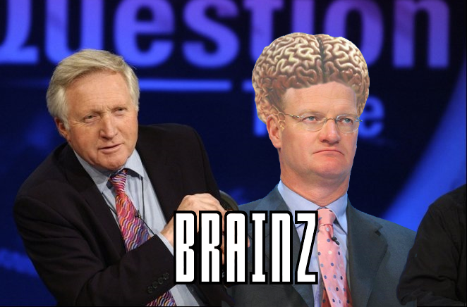 Back to the question in hand:  Considering he’s already written ten books on very clever sounding matters, intelligence is an area that he clearly isn’t lacking in (although trying to get Neil Hamilton off the hook wasn’t exactly a moment of incandescent genius) so we can clearly cross ‘Dork’ off the list of possible charges, leaving us with the matters of Obsession and Social Ineptitude to investigate further. On the subject of Obsession, at least three of his books are about welfare reform and considering that welfare reform isn’t exactly an area that just casually fall into, I think we can safely say that we’ve narrowed down the search to a straight out fight between ‘Nerd’ and ‘Geek’, a tussle that can only be resolved on the battlefield on Social Ineptitude. And what better arena to stress test the Not Gud Wiv Peepol Hypothesis than the fight to the death that is Question Time? To the show, dear friends, to the show.